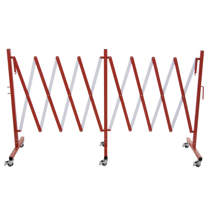 Expanding barrier with 6 swivel castors, 400 x 100 cm, red/white, aluminium