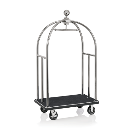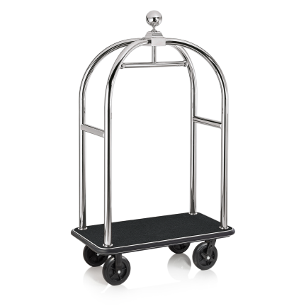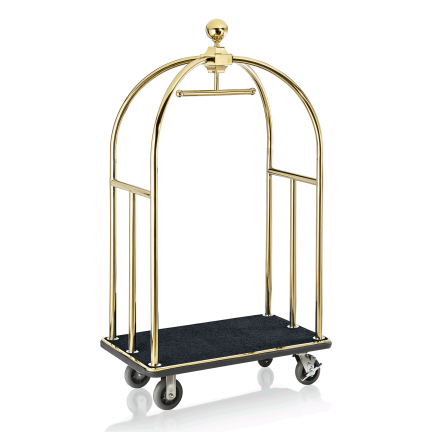 Gepäckwagen DRIFT, 112 x 60 x 190 cm, titanium gold, schwarzer Teppich, Chromnickelstahl 18/8