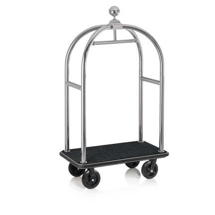Gepäckwagen DRIFT, 112 x 60 x 190 cm, silberfarben, schwarzer Teppich, Chromnickelstahl 18/8