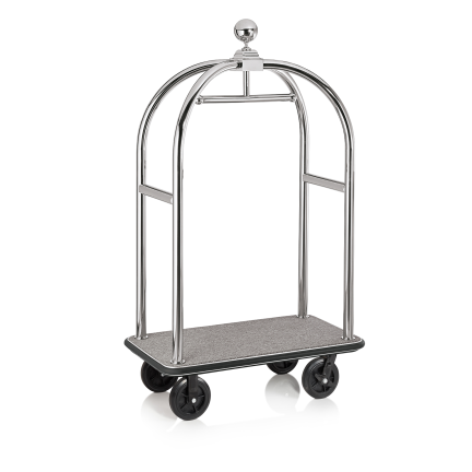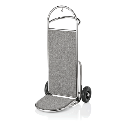 Gepäckwagen DRIFT, 112 x 60 x 190 cm, silberfarben, grauer Teppich, Chromnickelstahl 18/8