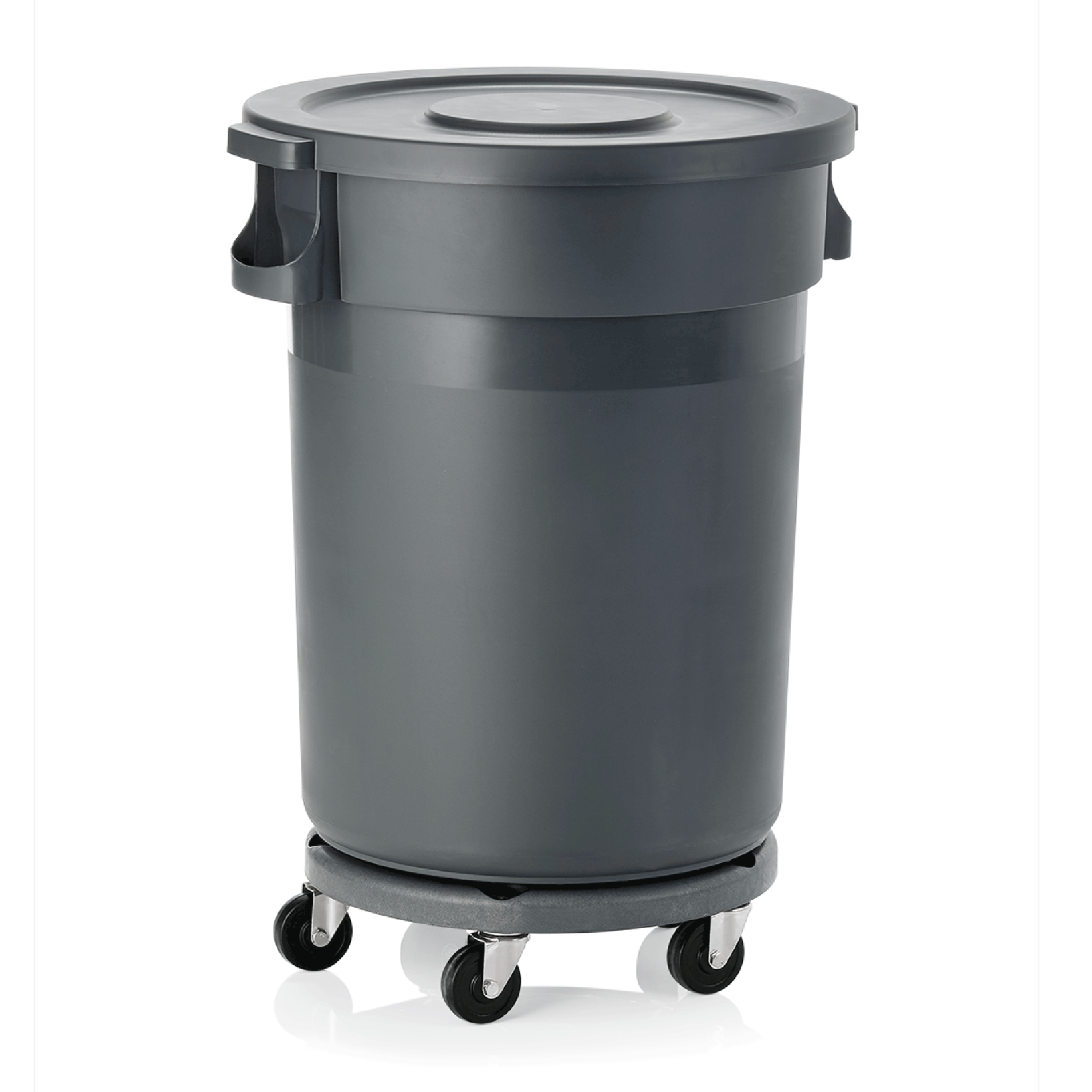 | Artikelbezeichnung | Abfallbehälter, 120 ltr., Ø 51 cm, Höhe 83 cm, mit Transporttrolley, Flachdeckel, Polypropylen |