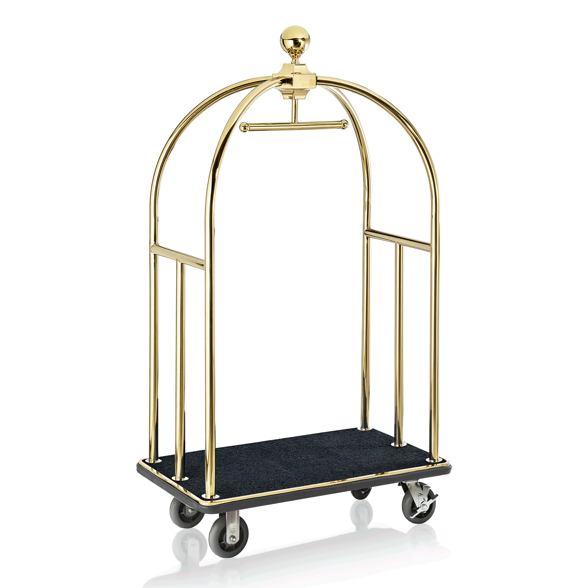 | Artikelbezeichnung | Gepäckwagen UNITY, 112 x 60 x 185 cm, goldfarben, schwarzer Teppich, Edelstahl |