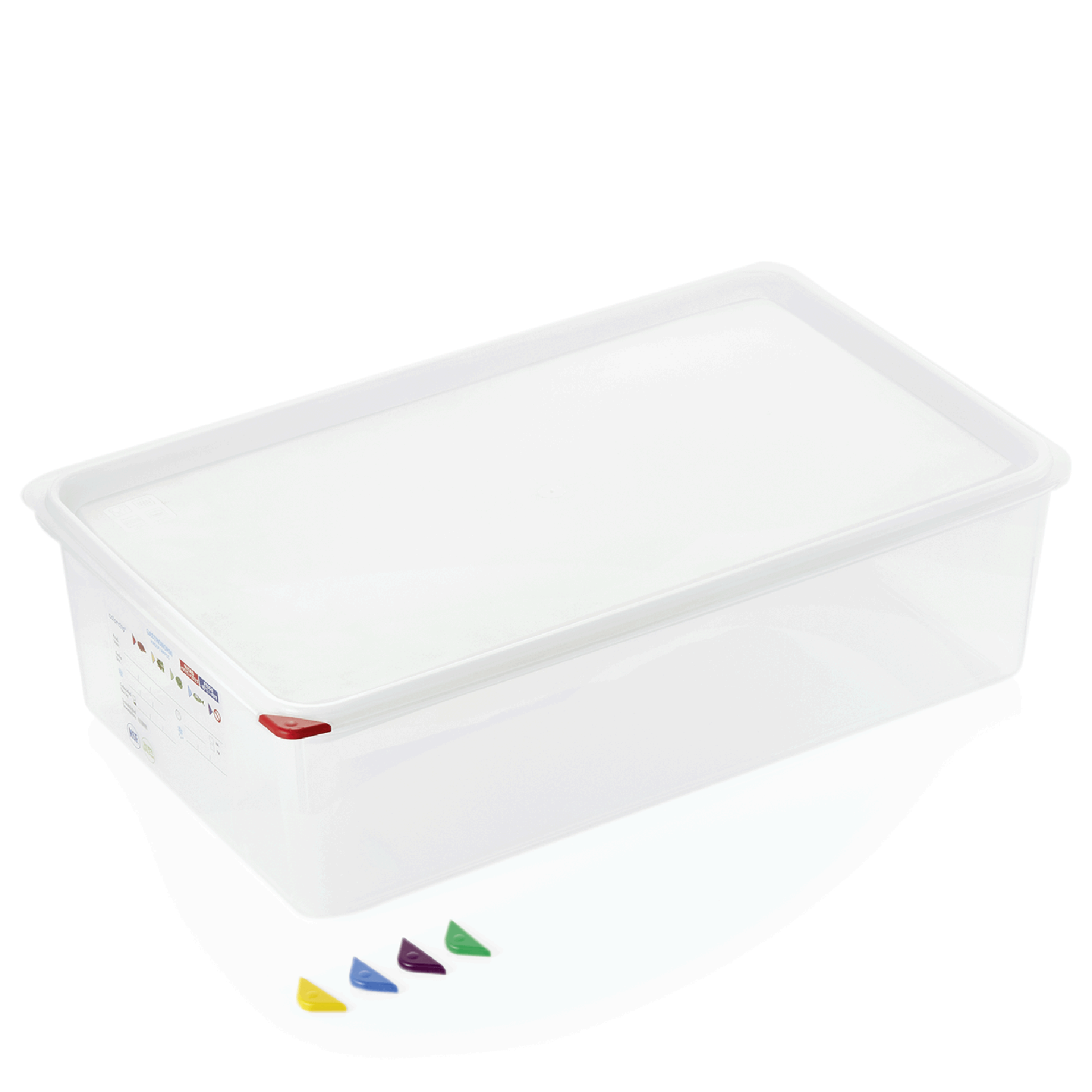 | Artikelbezeichnung | GN Behälter Set GN 86 1/1-150 mm, mit Deckel, mit rotem Clip, Set á 6 Stück, Polypropylen |