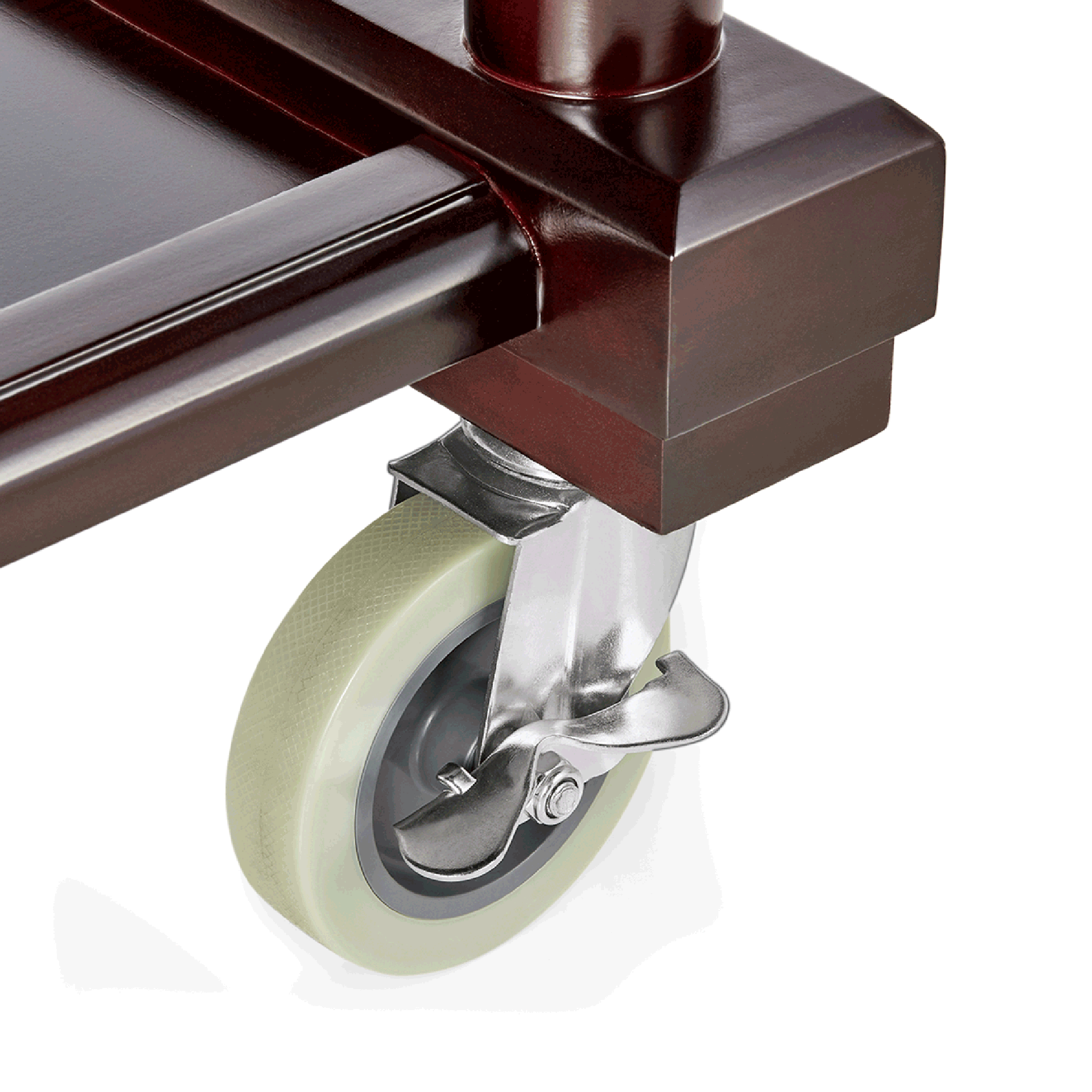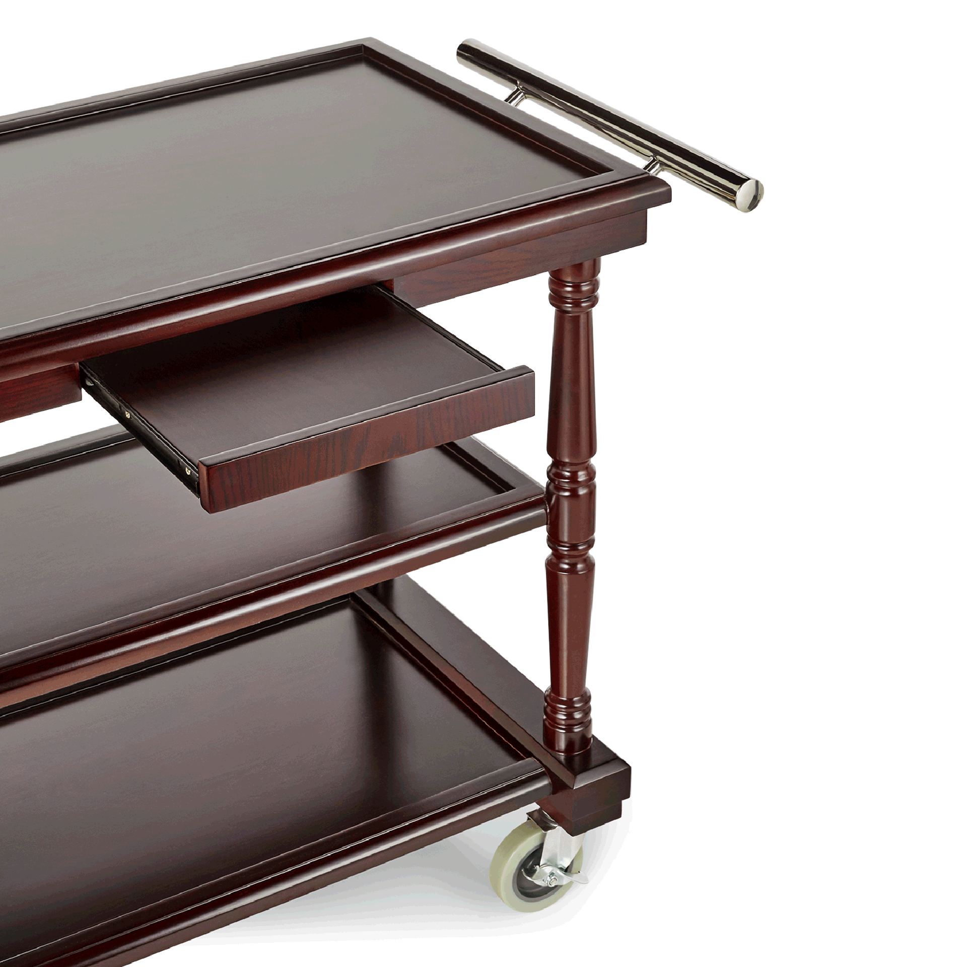 | Beschreibung des Artikels | Rahmen aus Birkenholz, furniert und lackiert, Borde aus MDF, Handgriff aus Chromnickelstahl, 4 schwenkbare Rollen à Ø 10 cm, davon 2 mit Feststeller, Abmessung unteres Bord: 68 x 42 cm, Traglast 10 kg pro Bord, Artikel wird vormontiert geliefert |