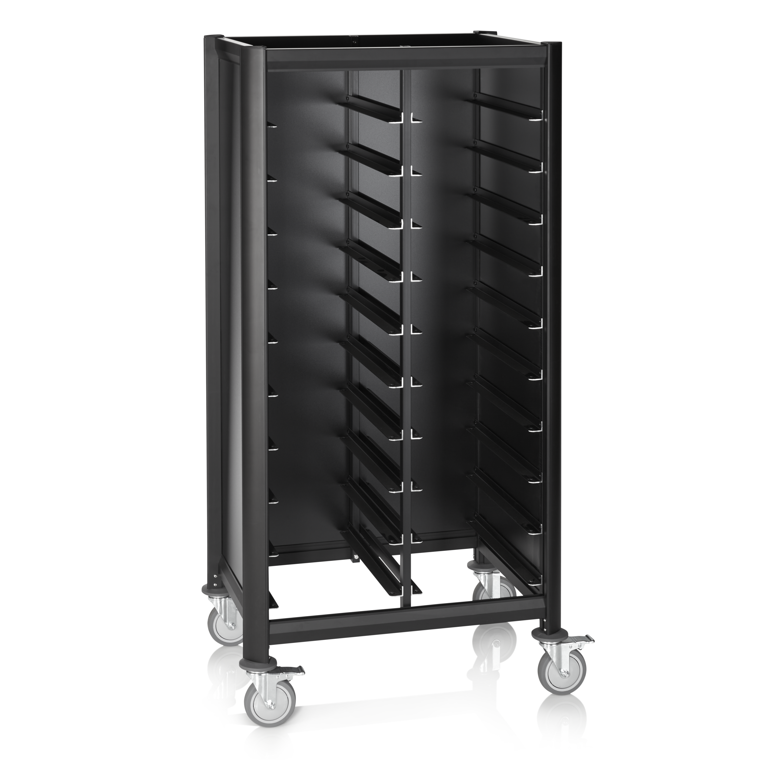 | Artikelbezeichnung | Tablettwagen DOUBLE GN 1/1 MENSA BLACK, für 2 x 10 Tabletts, schwarz, 60 x 80 x 165 cm, MDF/Aluminium |