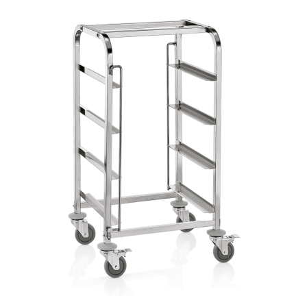 Transportwagen für Spülmaschinen, mit 4 Schienen, 56 x 56 x 106 cm, Chromnickelstahl
