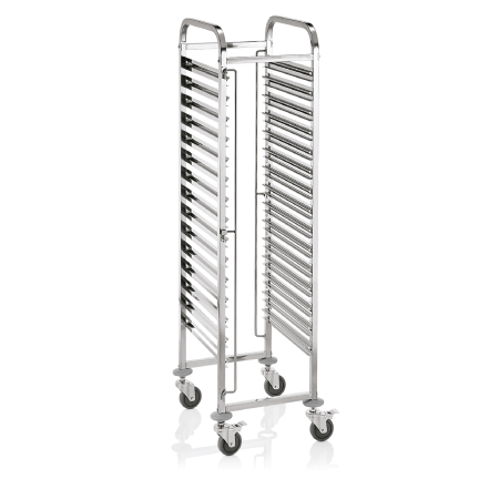 EN Regalwagen CANTINA für 15 bis 30 Euronorm Tabletts, 55 x 42,5 x 174 cm, Chromnickelstahl